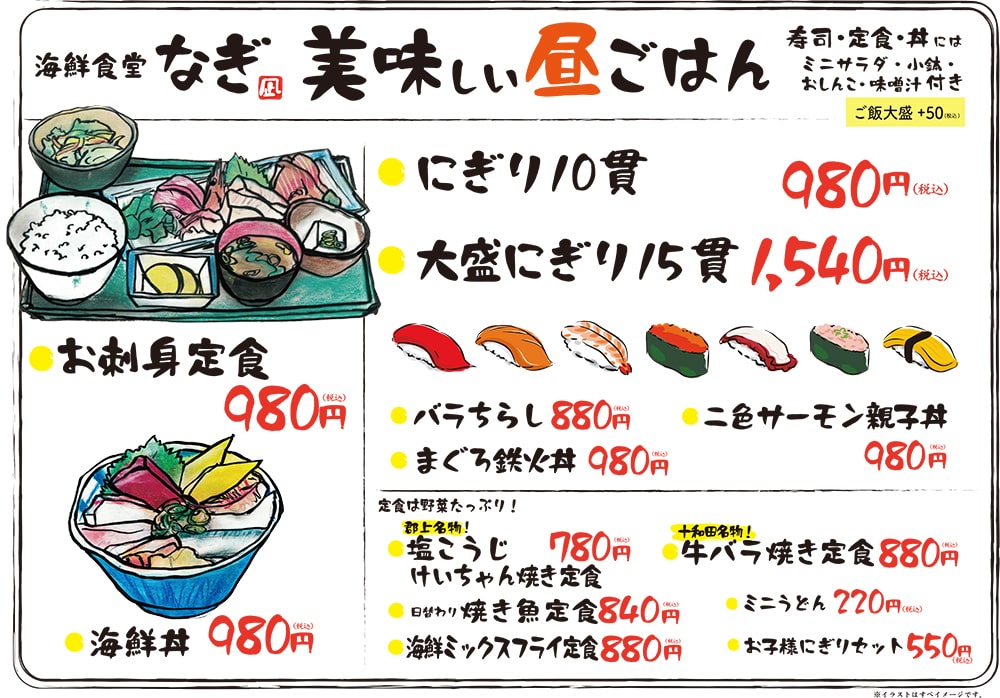 海鮮食堂なぎのメニューです。