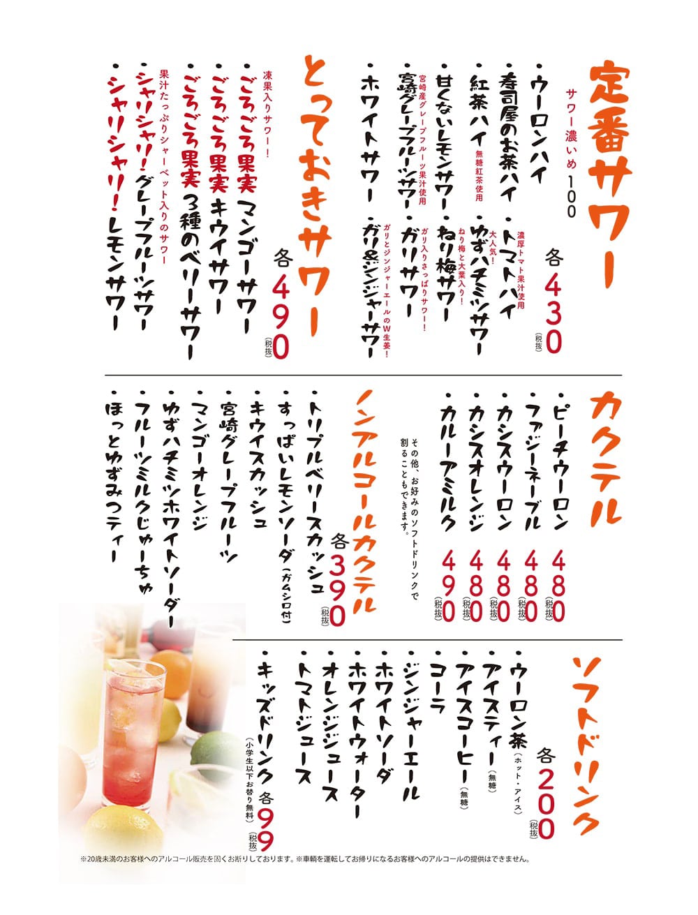 | メニュー(一部) | |